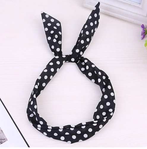 Vintage Style Wired Hairband Polka Dot Black