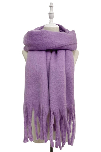 • Soft Tassel Scarf Check Print Purple & Mustard