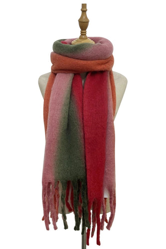 • Soft Tassel Scarf Stripe Red/Green/Pink