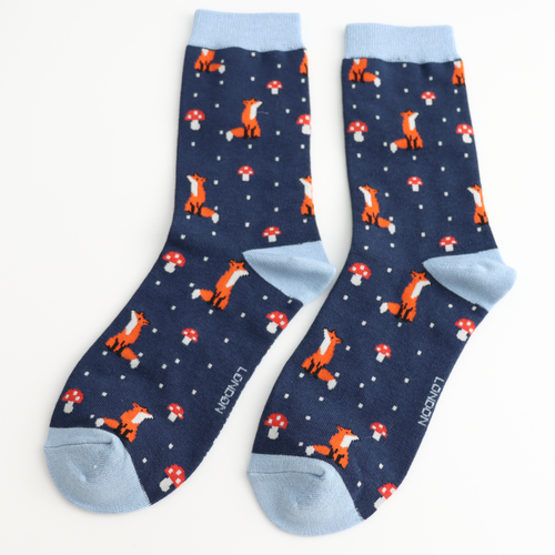 Bamboo Socks Foxes & Toadstools Navy Blue