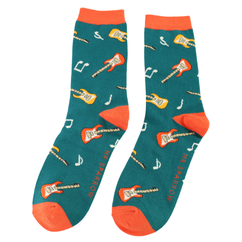 Men's Bamboo Socks Guitars Teal