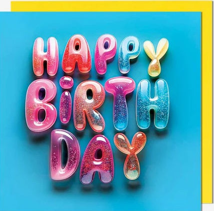Colourful embossed card with yellow envelope.