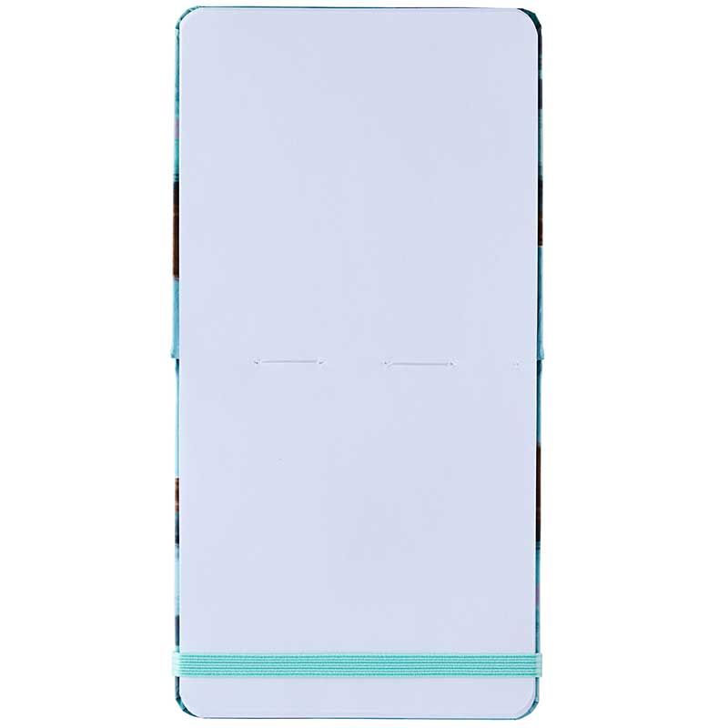 Pretty hardback mini jotter with blank pages and elastic closure band.