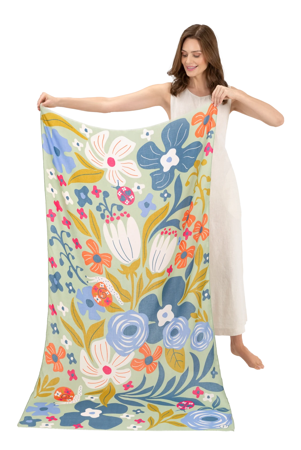 Cute critters are hiding in the foliage across this wonderfully bright scarf! Soft sage and poppy pastels combine for a palette that is ideal for spring time. Wrap yourself in joy!