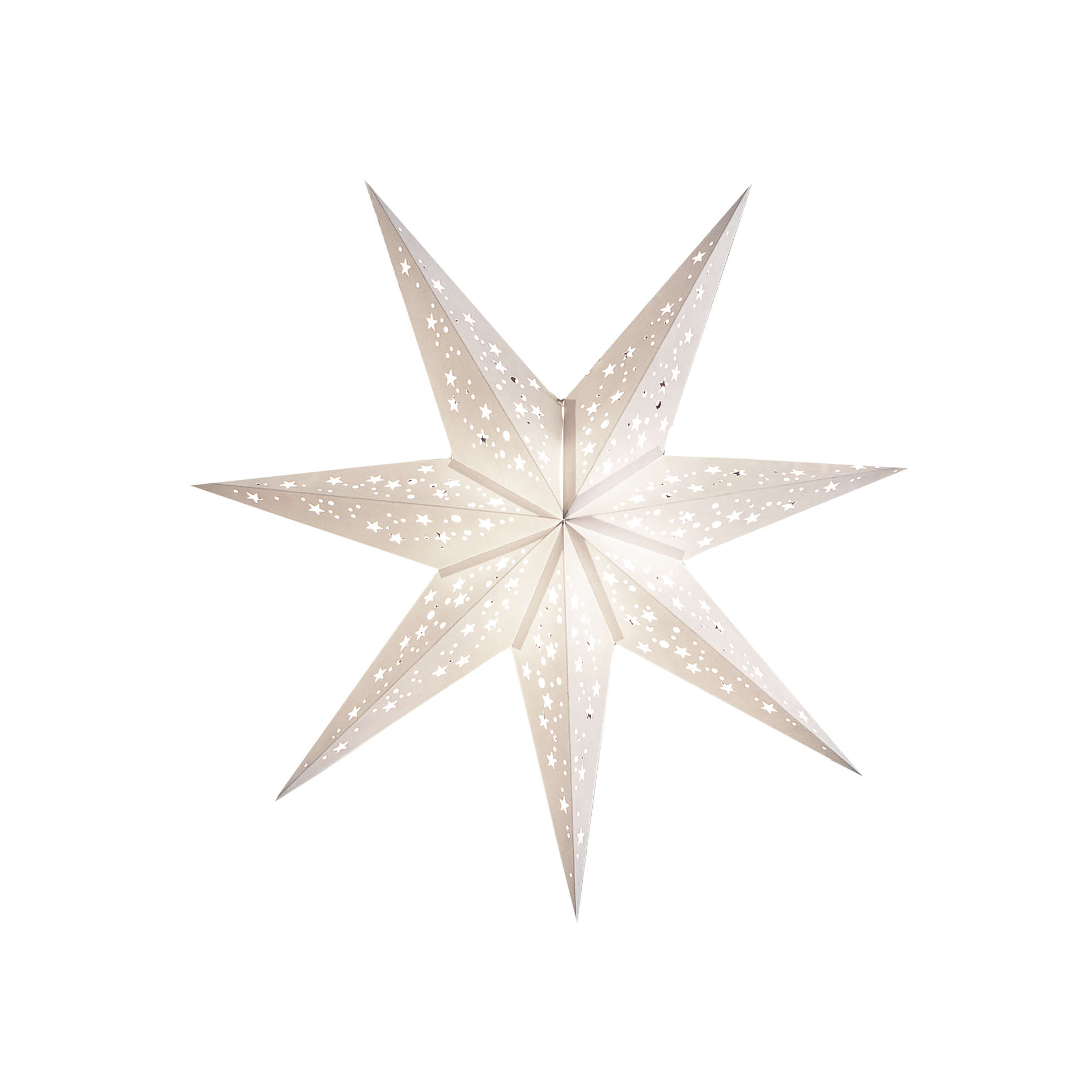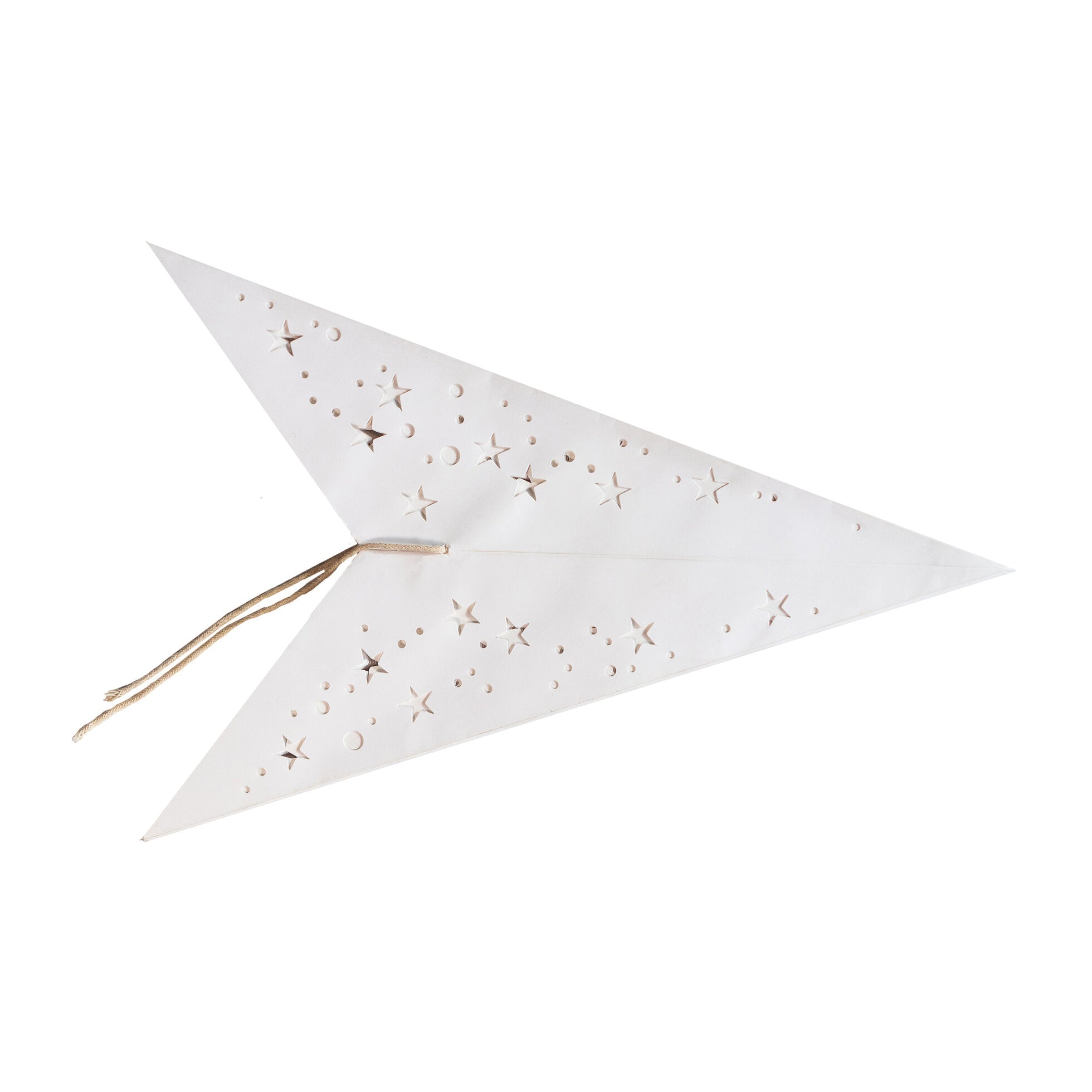 This stylish white Scandinavian paper star combines a clear, neutral tone with captivating lighting effects - watch as light twinkles through hundreds of tiny star-shaped perforations, creating a sensational display of starry projections around the room!