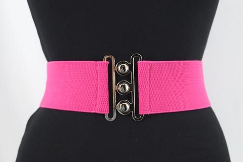 Elasticated belt with interlocking clip front. Gives you a great hourglass silhouette in a swing dress!